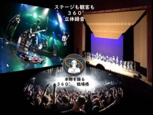 360°VR 動画は、ただ前後左右・上下の視野に加え、立体的な音響により、空間の気配を感じることが出来ます。専用ゴーグルにイヤフォンやヘッドフォンを装着すると、より一層臨場感が高まります。音の大きさも、「ボリューム」から「音の遠近」という概念へと変化します。様々な角度から聞こえるので、「思わずその方向を向いてしまう」のです。