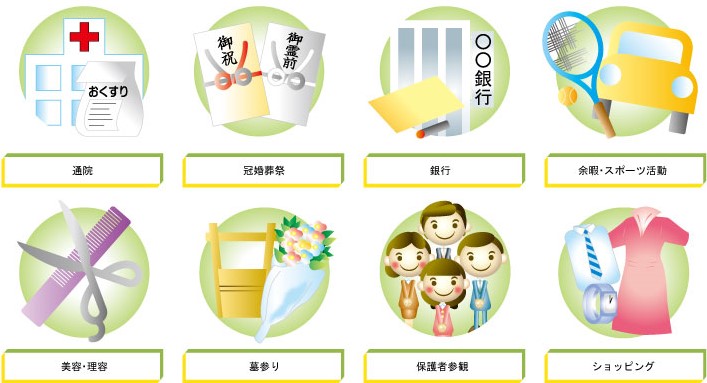 屋外での移動が困難な方(視覚障害、肢体障害、精神障害の方)が外出する場合に、ヘルパーが付き添い、移動中や目的地において移動の介護、排せつ、食事の介護、代筆、代読、危険を回避するための支援などを行います。